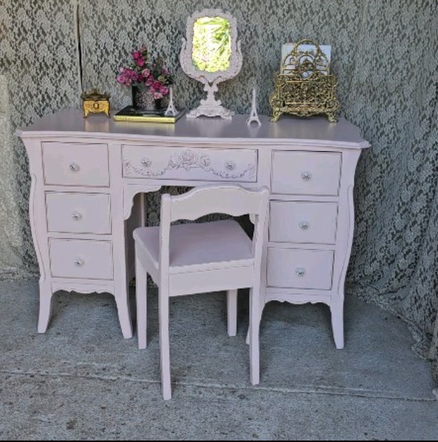 Indulge in the epitome of vintage charm with our Elegant Pink Vanity Table Set. This delightful ensemble includes a beautifully crafted vanity table, a matching desk, and an exquisite vanity chair. The soft pink hue, adorned with romantic detailing, creates an ambiance reminiscent of Parisian elegance.